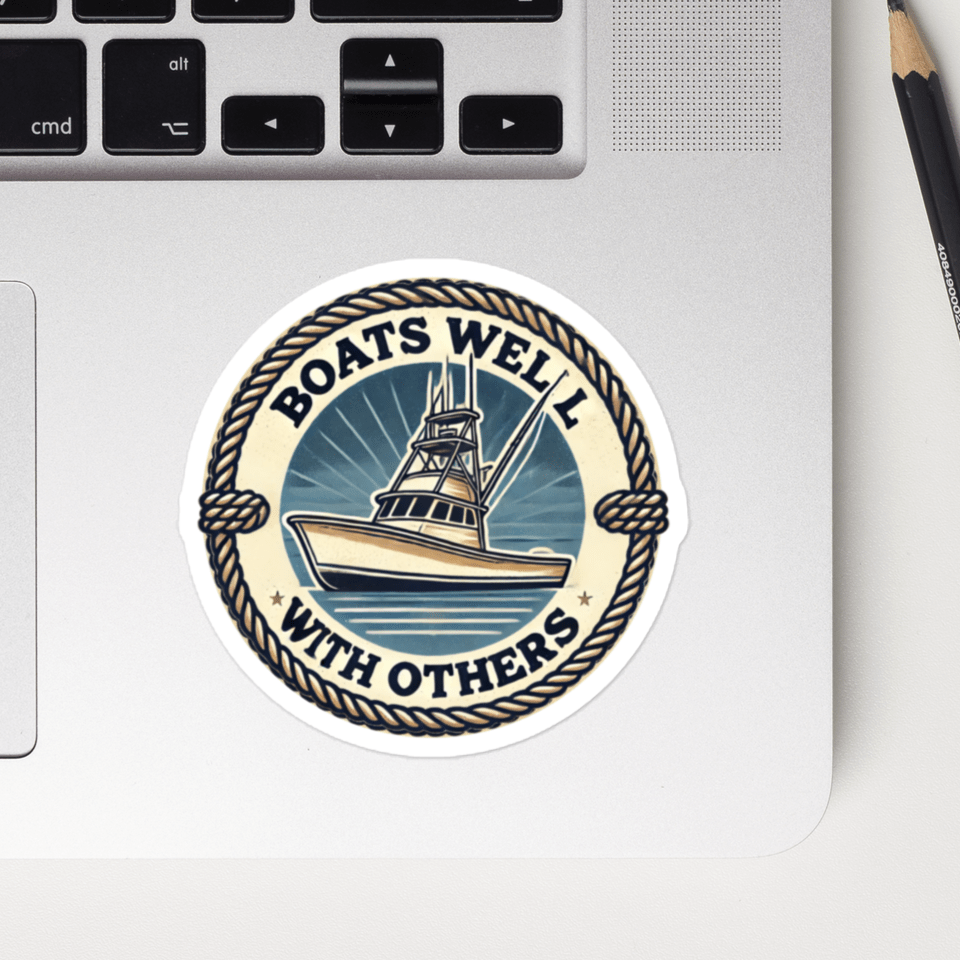 'Boats Well With Others / Sportfisher' Bubble-free Sticker β Waterproof & Bold