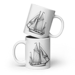 'Cutter Rig Yawl' Sailboat Line Drawing - White Glossy Ceramic Mug