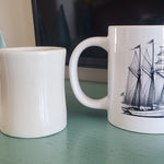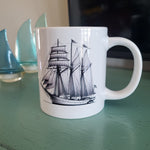 'Classic Schooner' Sailboat Line Drawing - White Glossy Ceramic Mug