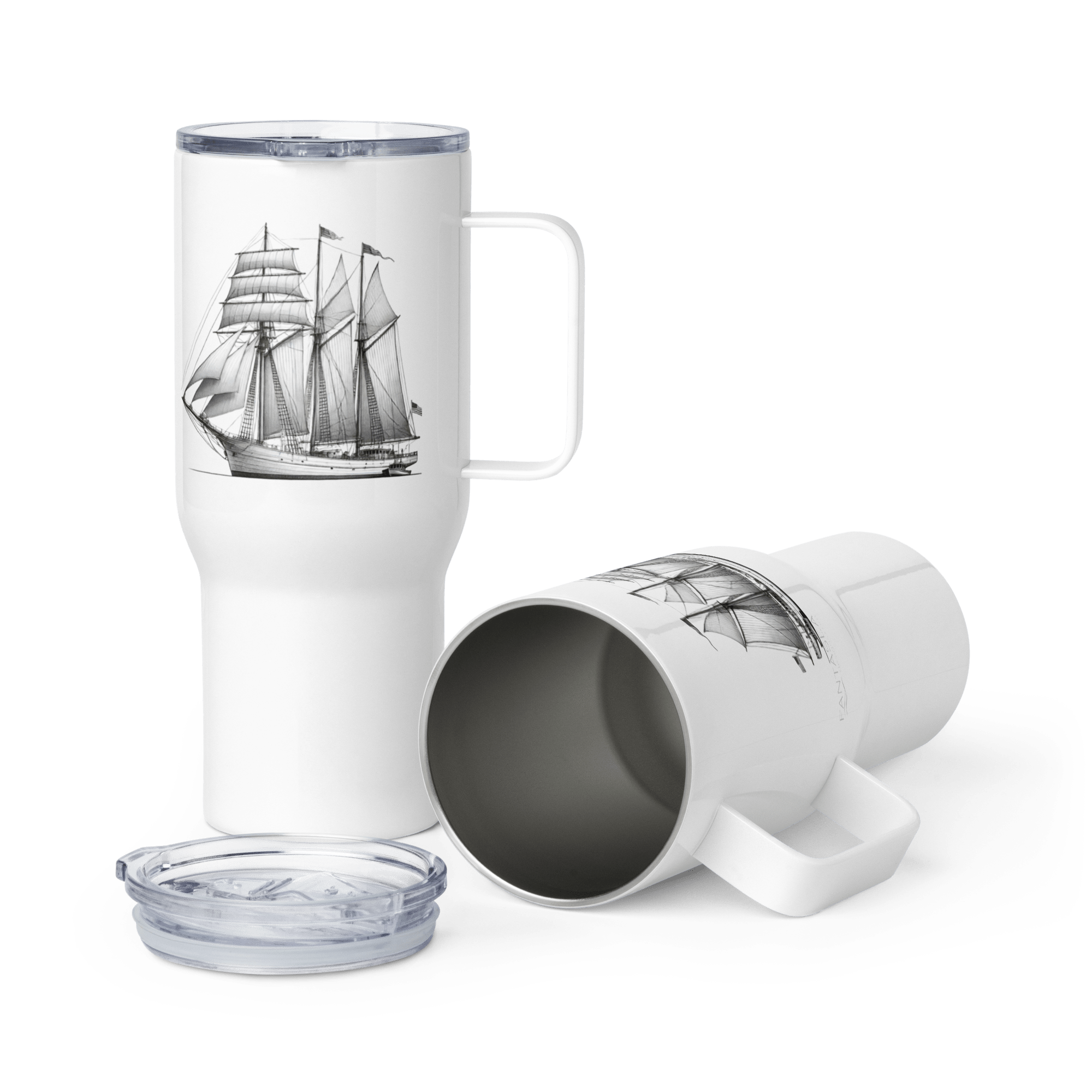 'Classic Schooner' Sailboat Line Drawing – Stainless Steel Travel Mug