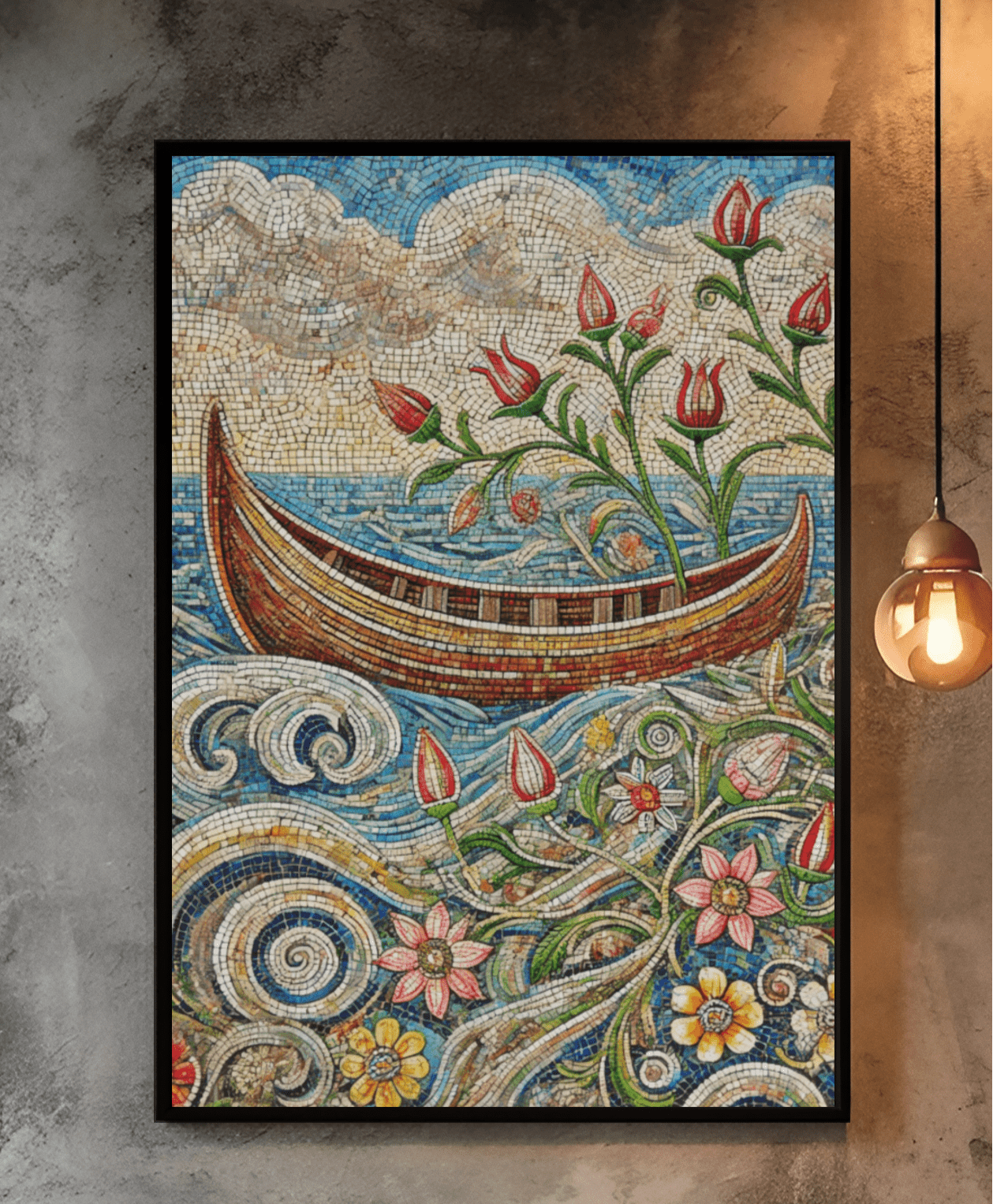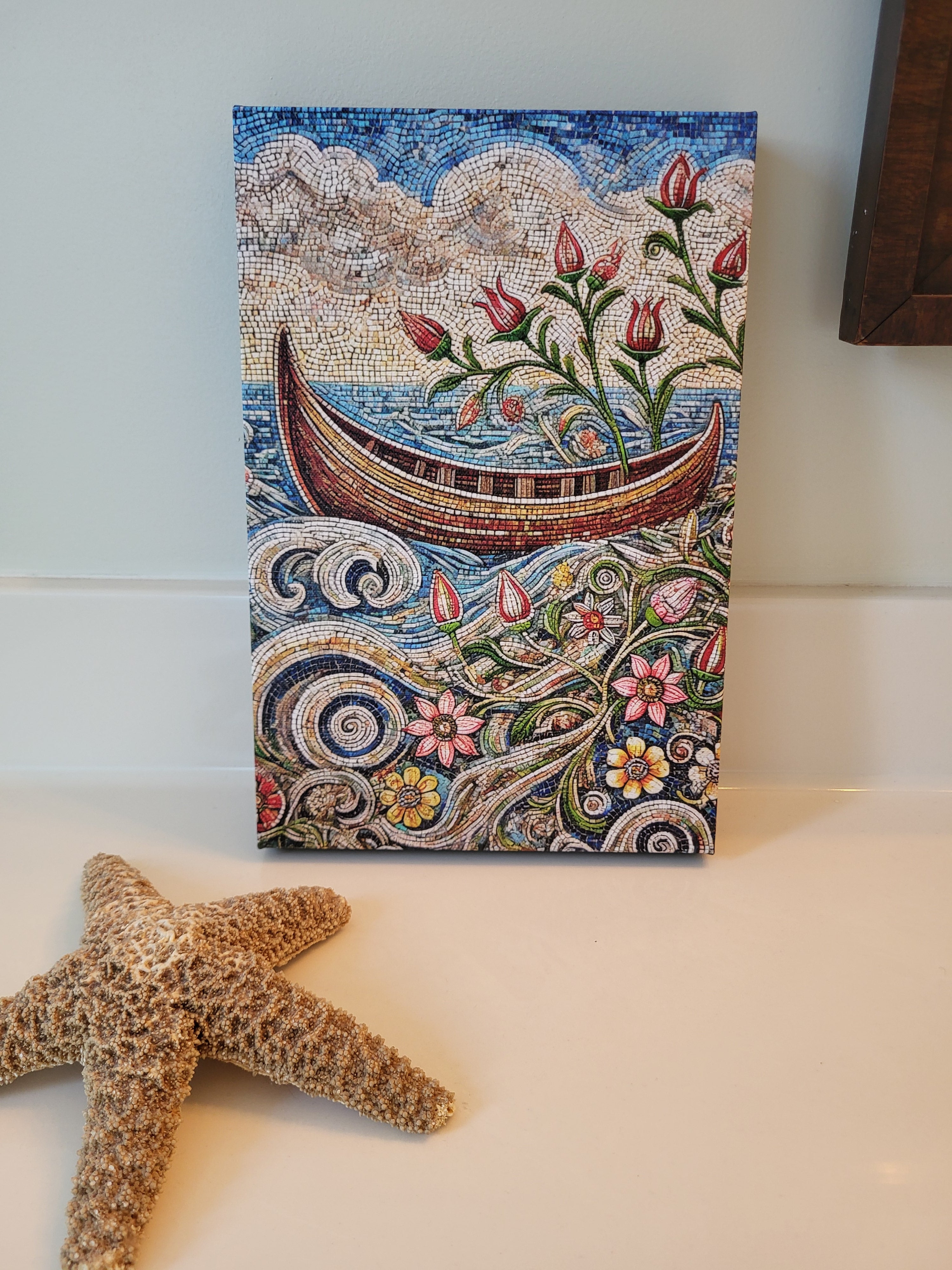 Transform Your Space with the beauty of our Lake Worth Boat with Flowers / Mosaic wall art! Whether you live by the coast or just dream of it, this piece brings the ocean's essence into your home!