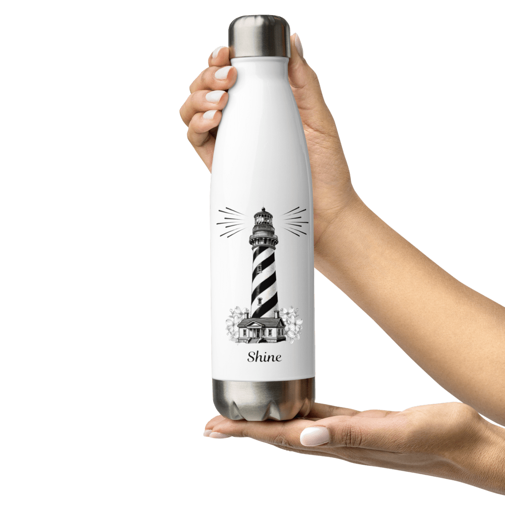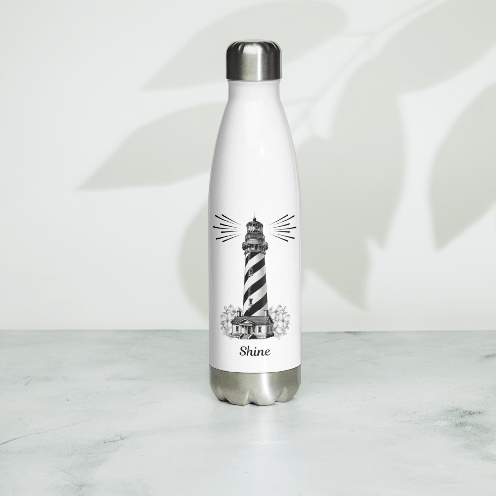 This 17oz stainless steel bottle is more than just hydration — it's a bold, nautical statement designed to keep your drink icy cold or piping hot for hours. The lighthouse graphic reminds you to stand tall and stay grounded, wherever the day takes you.