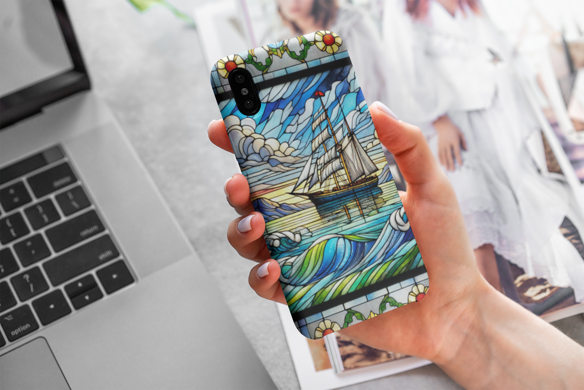 Tough Case for iPhone® Stained Glass Sailboat – Ocean-Inspired Style