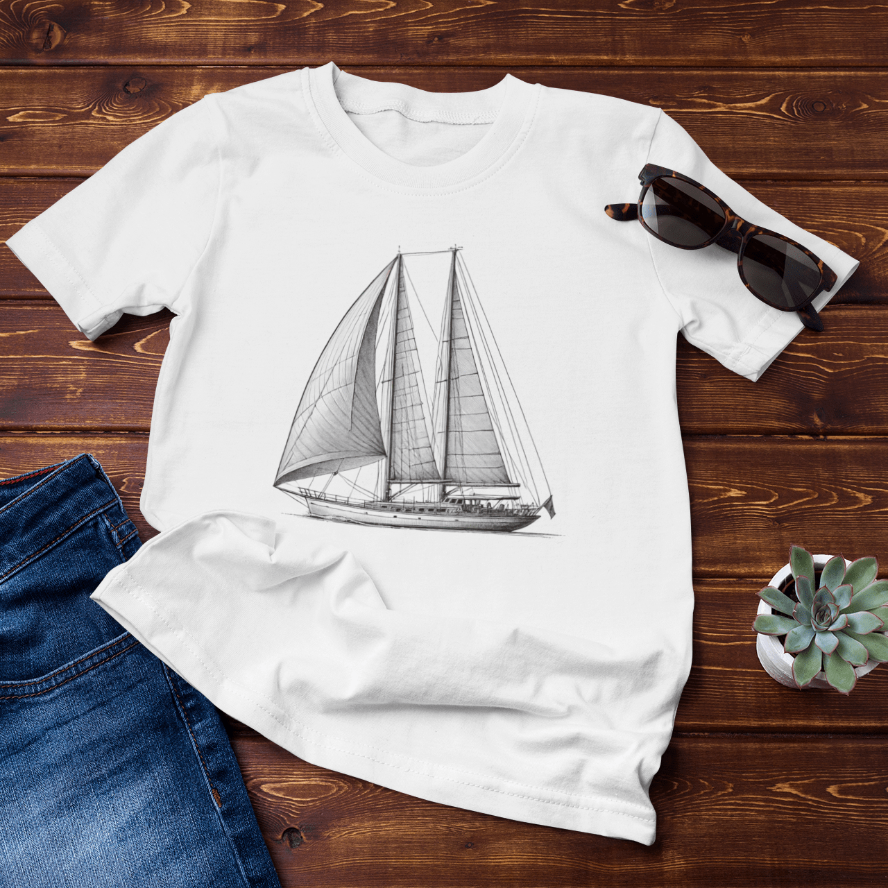 'Ketch' Sailboat Line Drawing - Unisex T-Shirt – Nautical Style Meets Comfort