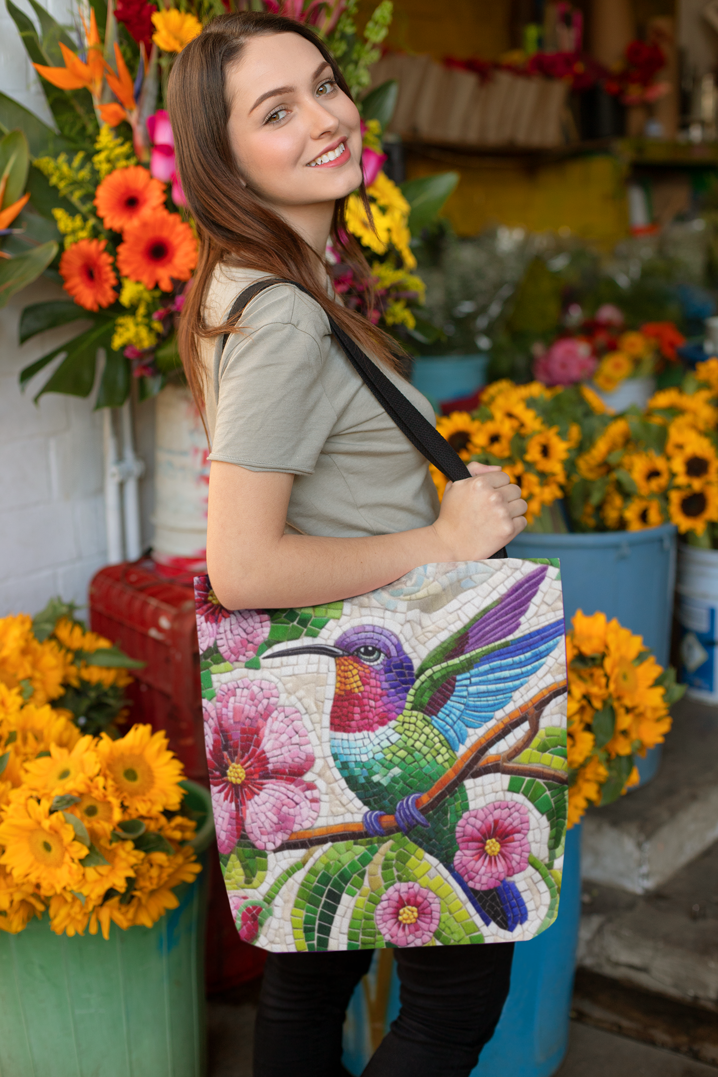 'Hummingbird with Flowers / Mosaic' Tote Bag