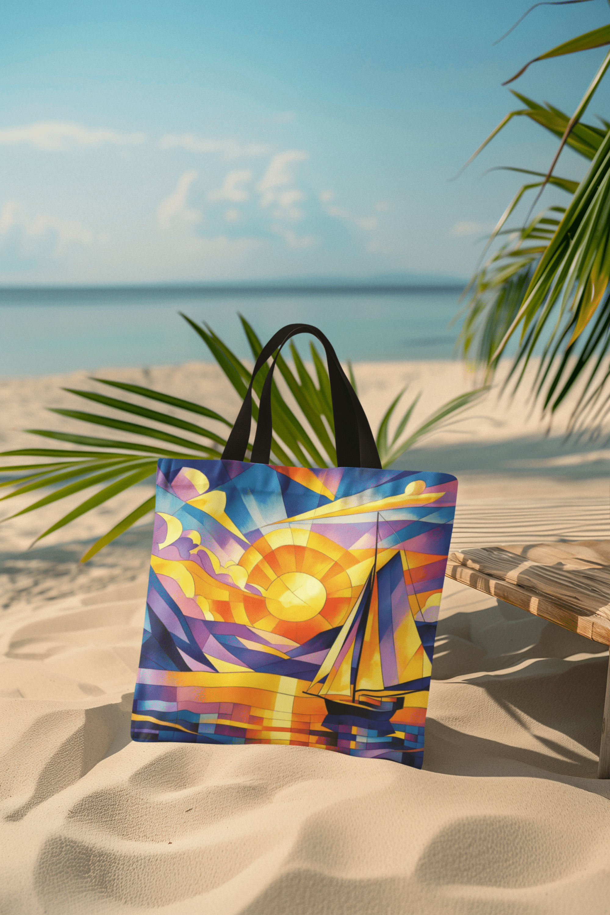 'Sail Sunset / Cubist' Tote Bag – Ocean-Inspired Style