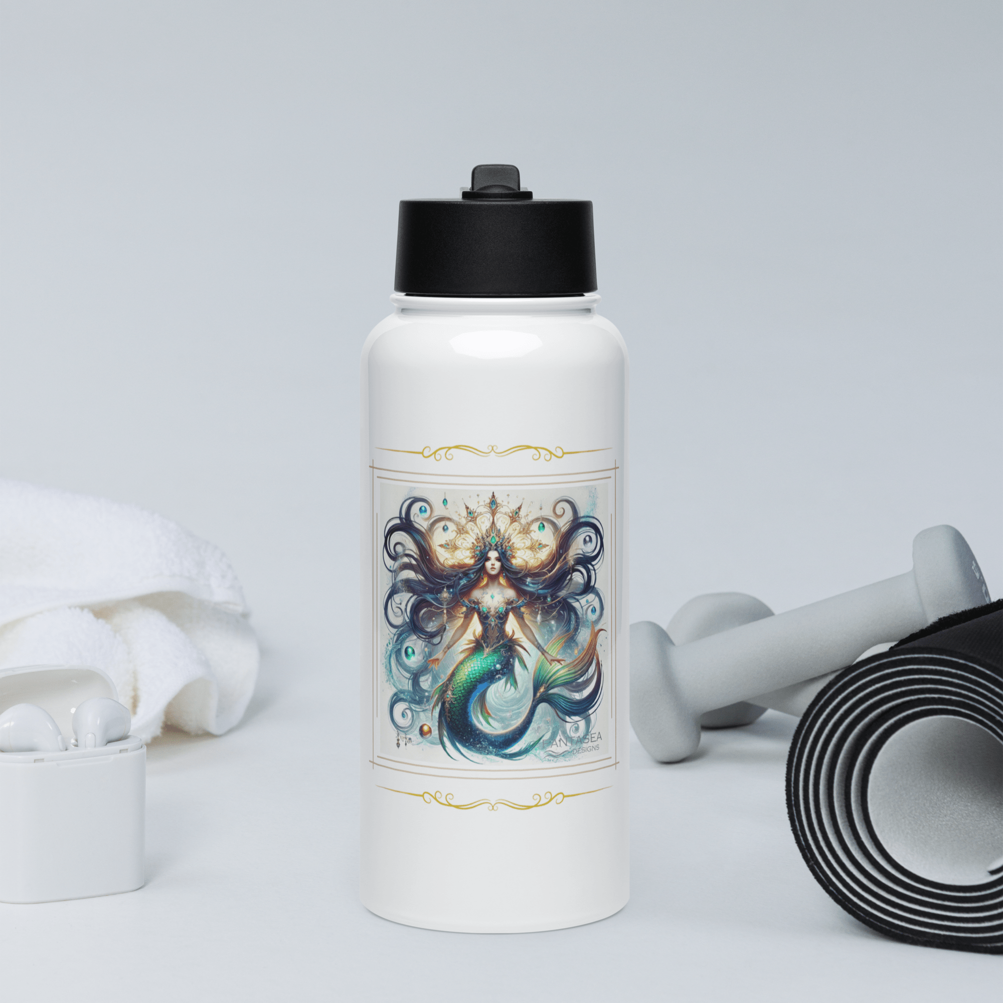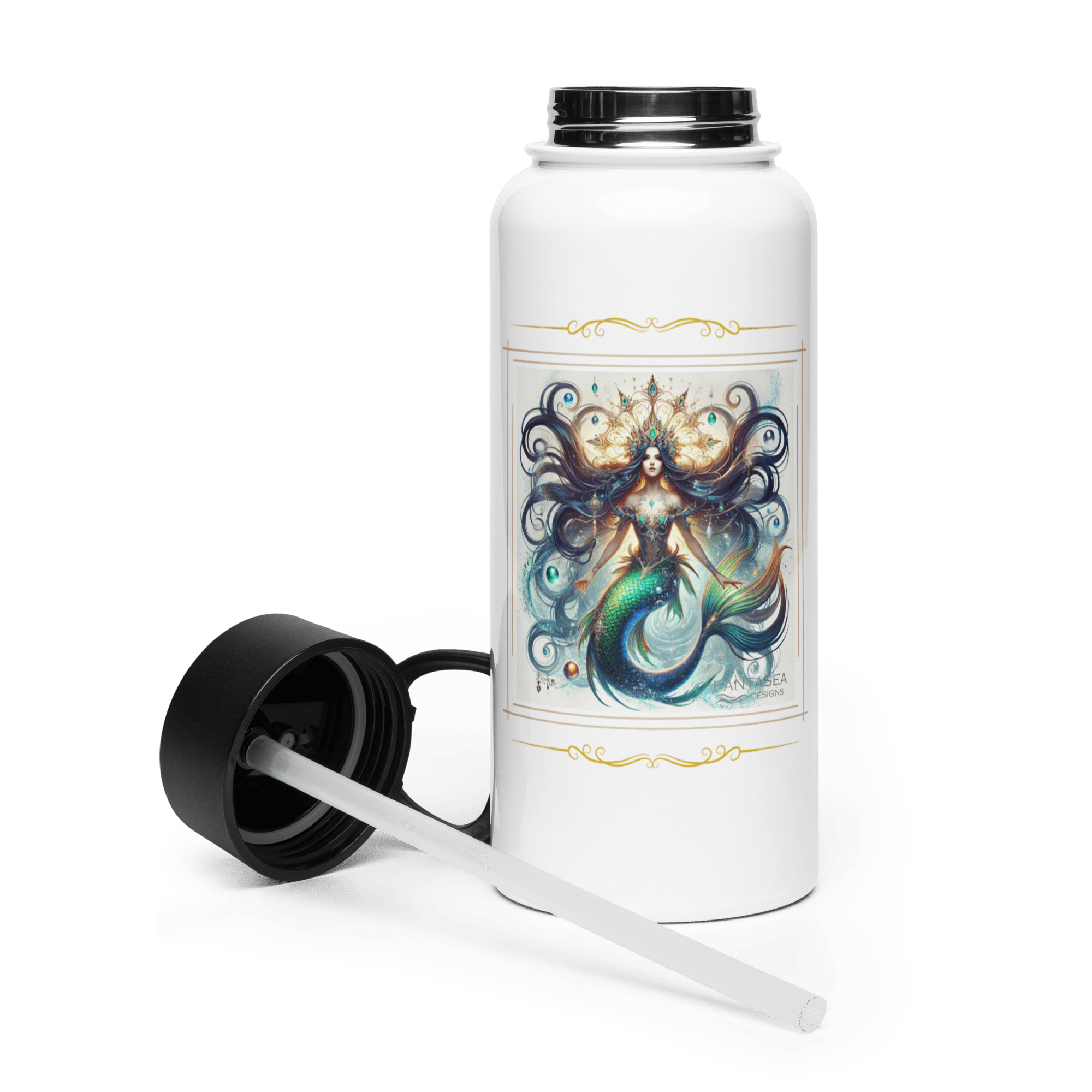 'Natasha' Mermaid Flourish Stainless Steel Water Bottle