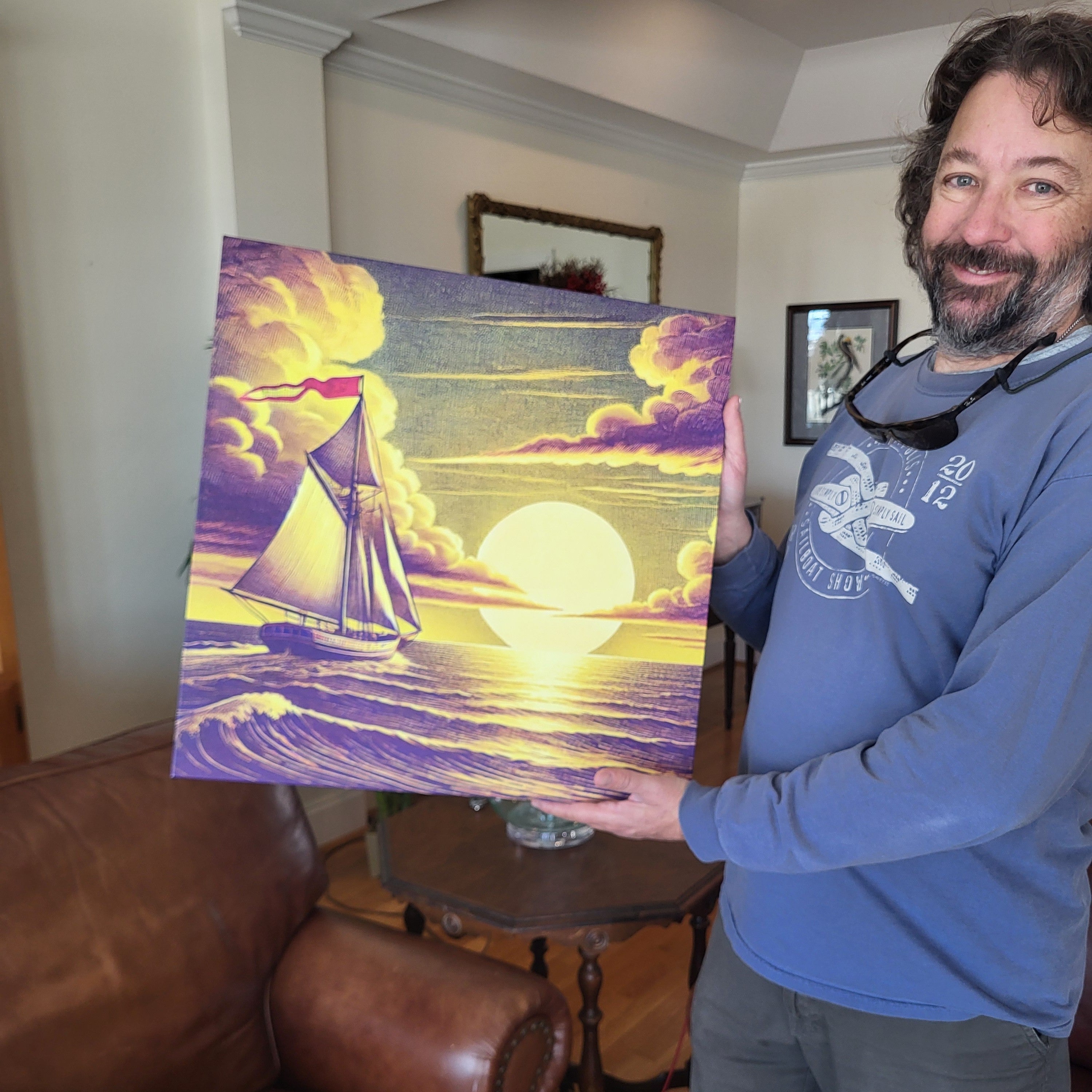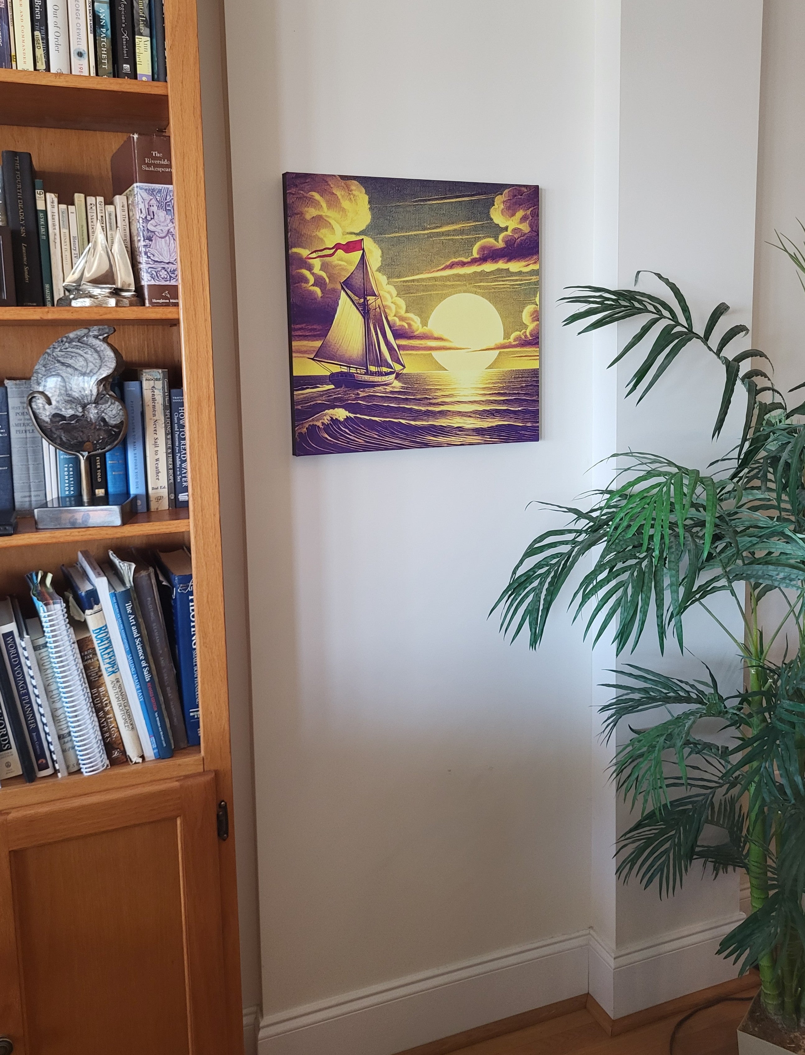 Impressionist Sailboat Sunset Canvas Wall Art 12x12 wall view