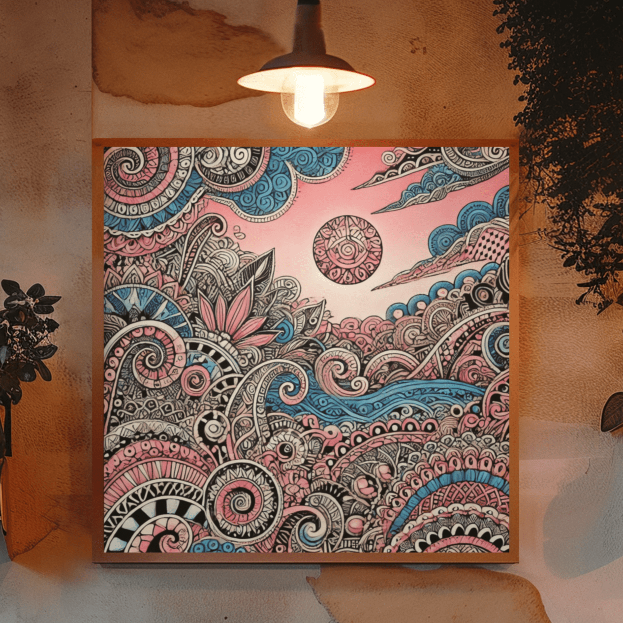 Transform Your Space with the beauty of our Pink Sand Beach / Zentangle wall art! Whether you live by the coast or just dream of it, this piece brings the ocean's essence into your home!